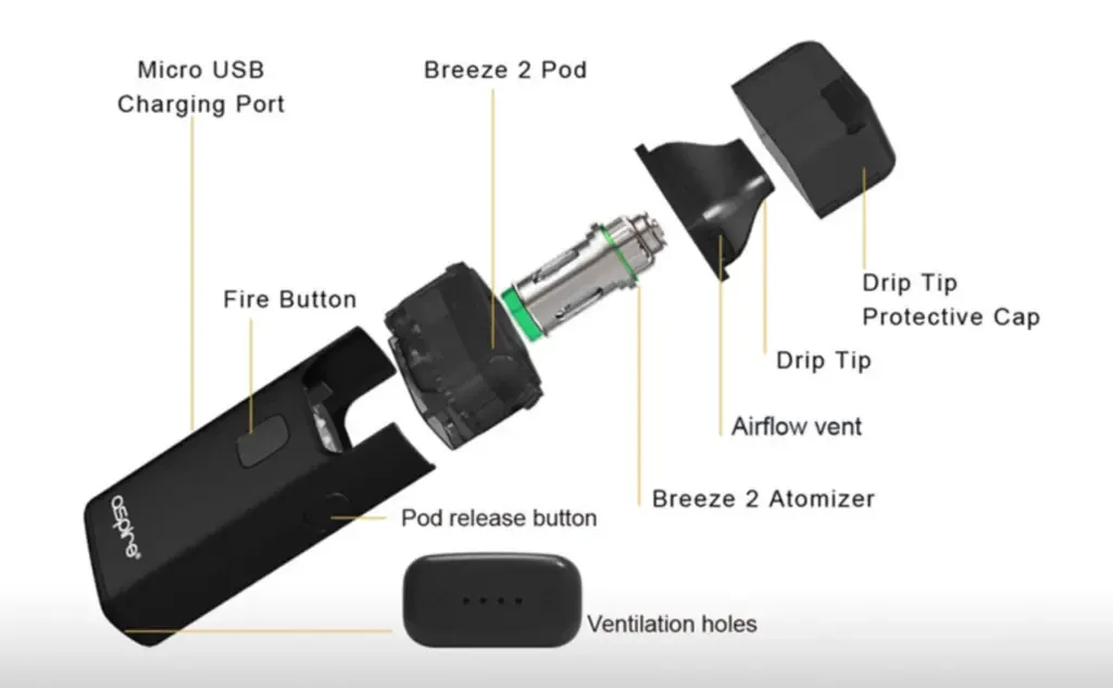 Aspire Breeze 2 AIO Kit features the compact size and drip tip cap that is the clean starter kit. Adopted the U-tech technology, it is specially designed for the nic salt type e-liquids.