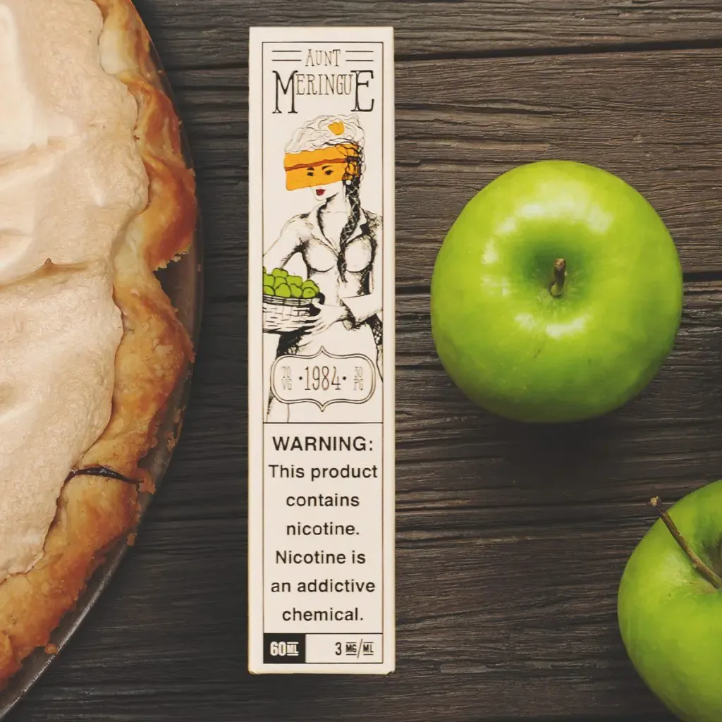 Aunt Meringue by Charlie’s Chalk Dust the newest dessert flavor from the Mr. Meringue series, capturing the essence of an apple meringue pie baked into a golden crust. This dessert vape is sure to be a fan favorite for those that like sweet fruity bakery flavors.