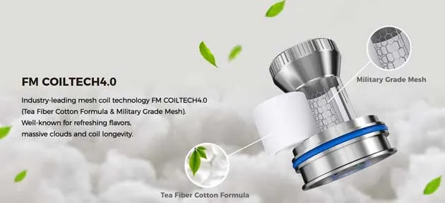 To ensure the best possible flavors, each coil uses FM Coiltech 4.0 technology which means it is made with tea fiber cotton and military-grade mesh. This has the further benefit of creating massive clouds and ensuring durability.