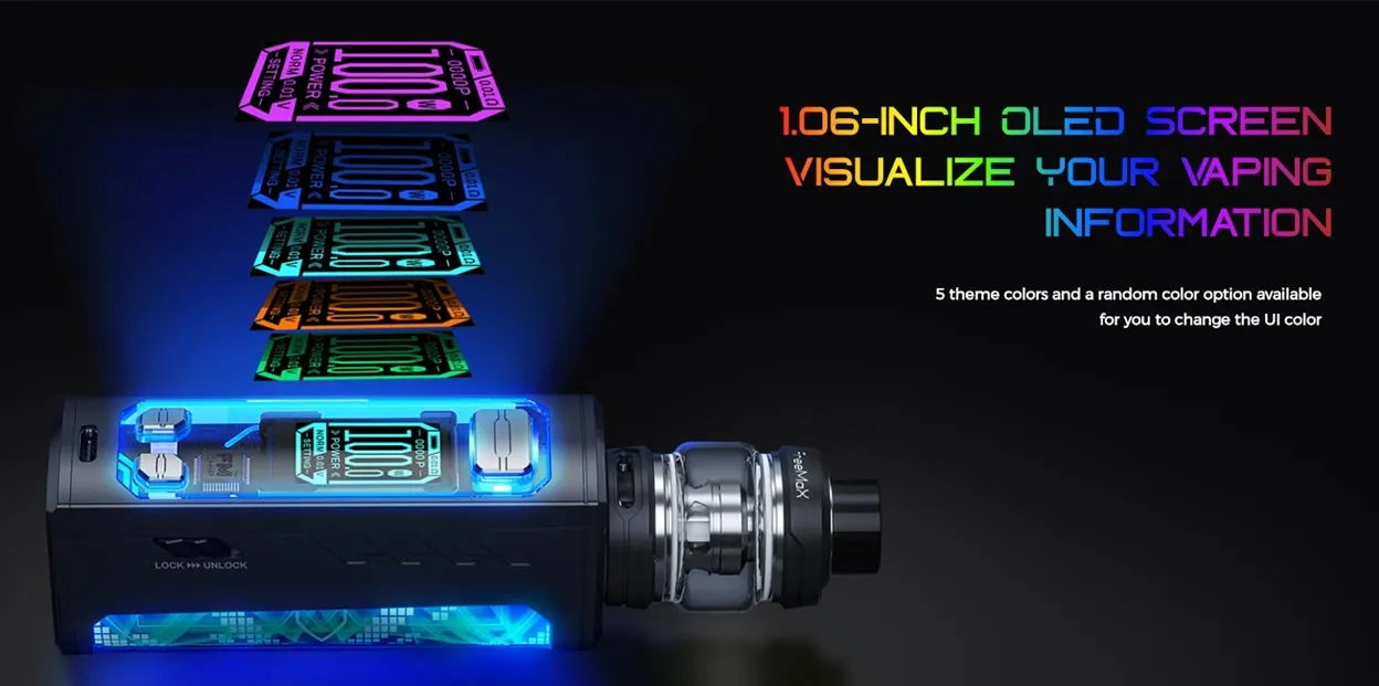 Freemax Maxus Solo 100W Kit consists of Fireluke Solo Tank and Maxus Solo 100W Mod, powered by an external 18650/20700/21700 battery and charged with a 5V/2A USB Type-C cable. It has a cool mood lighting design that will attract lots of attention no matter whether it’s day or night. Besides, this mod also features FMOS 3.0, FM CHIP 3.0, a 1.06-inch OLED screen, multiple output modes, and a slide switch, powerful enough to enhance your vaping experience.