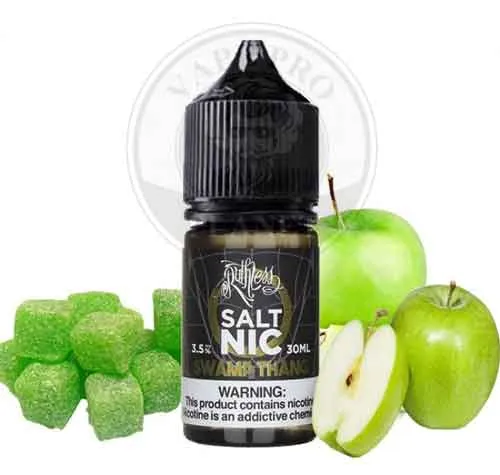 Swamp Thang Nic Salt by Ruthless. Is the tart and sugary green apple candy flavor that your sweet tooth has been begging for. The splash of sour sugar makes the mouth pucker like nothing else. This lip-smacking e-liquid flavor tastes just like those little cylinders of green candy that deliver serious juiciness to the tongue. therefore, you must try. Besides, you should stock.