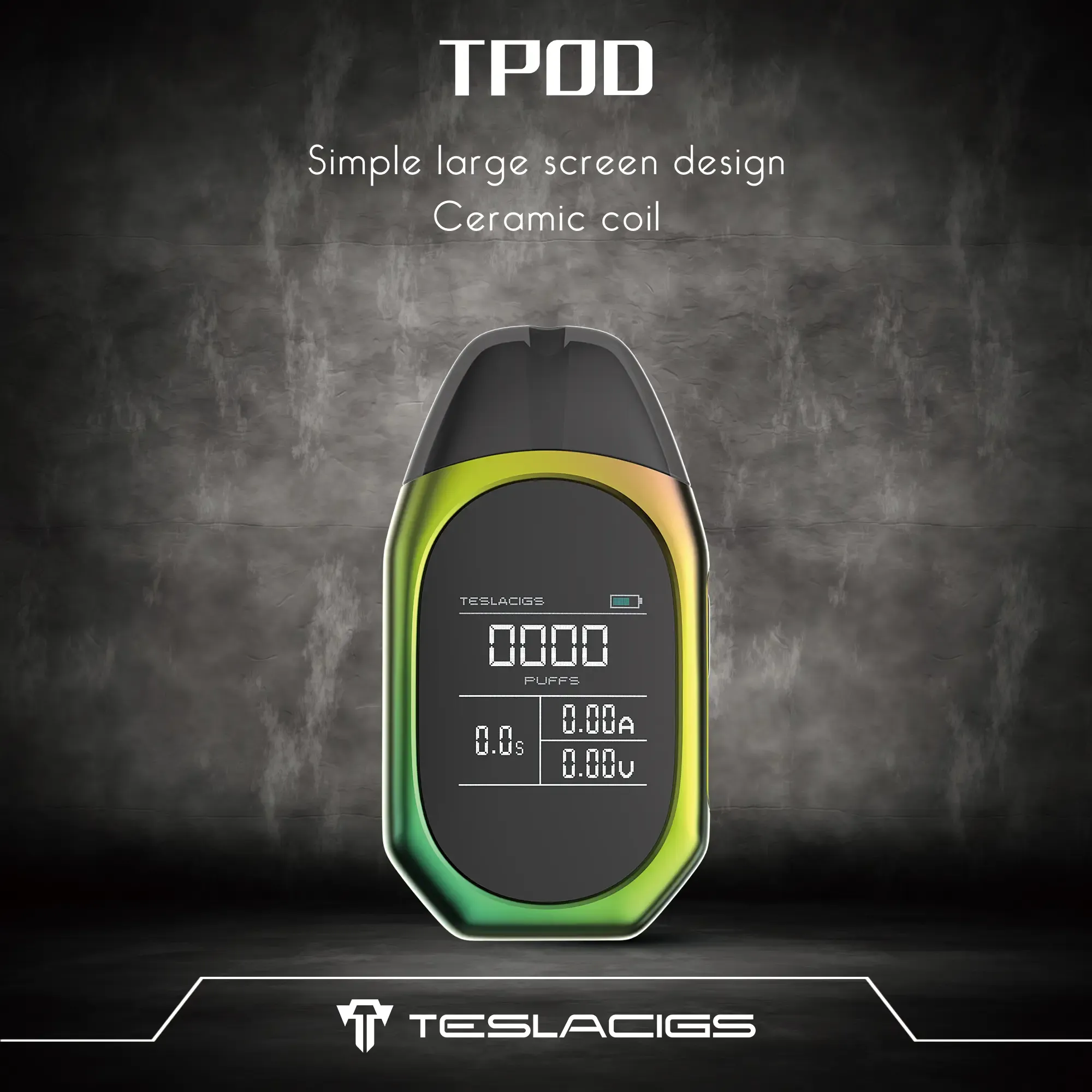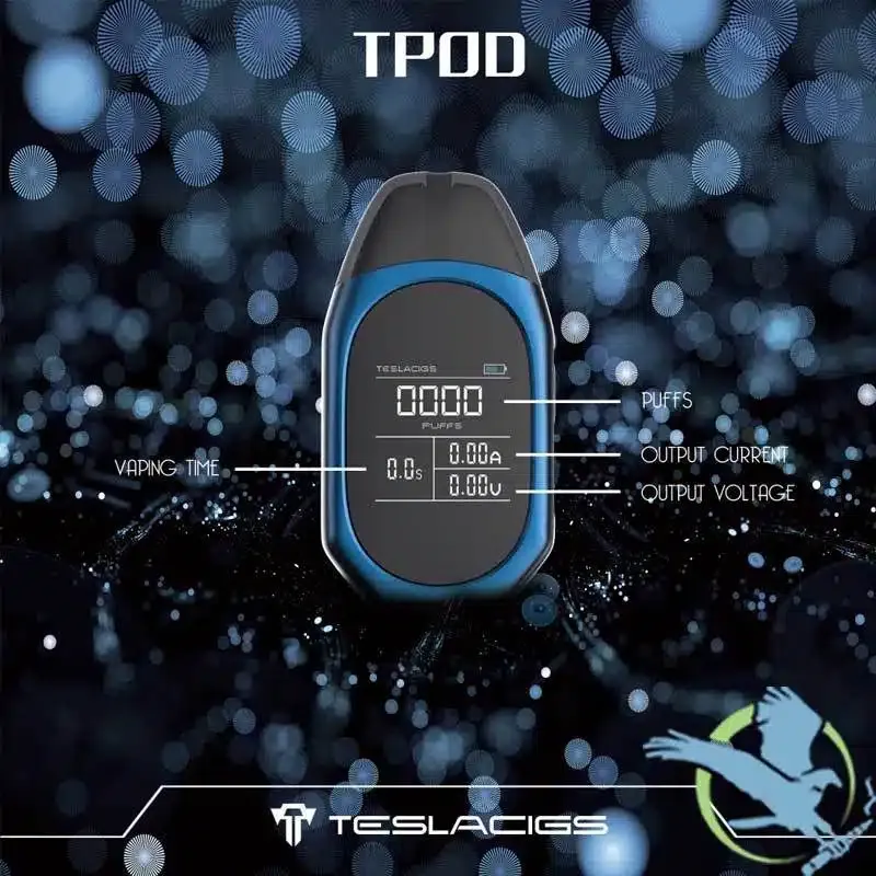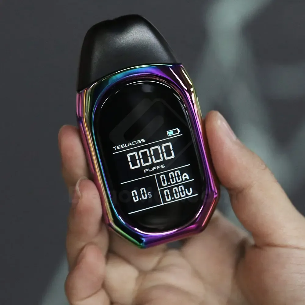 Teslacigs TPOD Kit has a big 1.4inch color screen, and now it’s the pod system vape kit with the biggest display, which enables Teslacigs TPOD to bring you simple but accurate vaping. On the screen, it shows battery, puffs, current, voltage, and time clearly. With a built-in 500mAh battery and 2ml e-liquid capacity, it offers you a convenient daily vape, and the popular ceramic coil ensures pure flavor. Tpod is easy to be held in hand or put into a pocket like a car key, and you can carry it everywhere and enjoy the premium flavor!