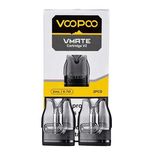 VMate Pod Cartridge V2 Replacements by VooPoo holds 3ml vape juice, and fits both VOOPOO VMATE Infinity Kit and VOOPOO VMATE E Kit. The coil is pre-installed at either 0.7ohm or 1.2ohm, which fits for e-liquid that utilizes nicotine no more than 50mg. Constructed from PCTG, it is easy to refill from the side slot. Optimized for MTL lovers.